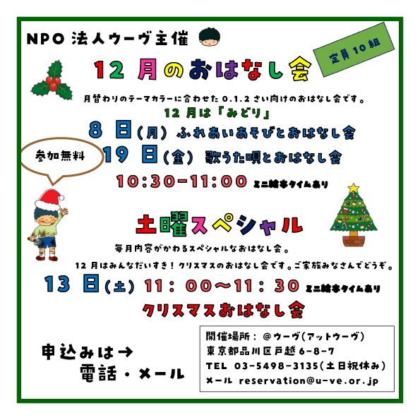 12月19日 金曜日は 10:30~11:00 『歌うた唄とおはなし会