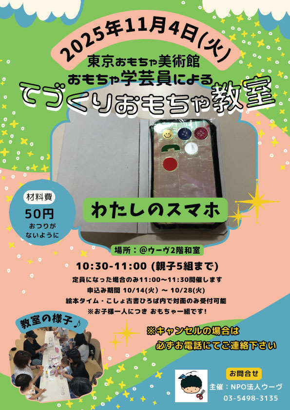 絵本タイム同時開催の「てづくりおもちゃ教室」再開します。