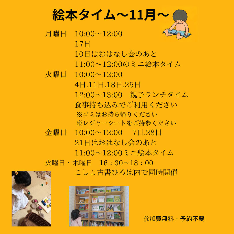 乳幼児親子向けの時間です。参加費無料で予約も不要です。