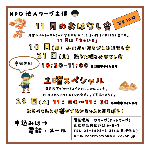 11月21日(金)10:30~11:00『歌うた唄とおはなし会』