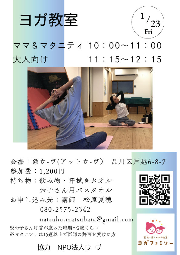 『ママ&マタニティヨガ』& 大人向け『はつらつヨガ』のご案内です♪