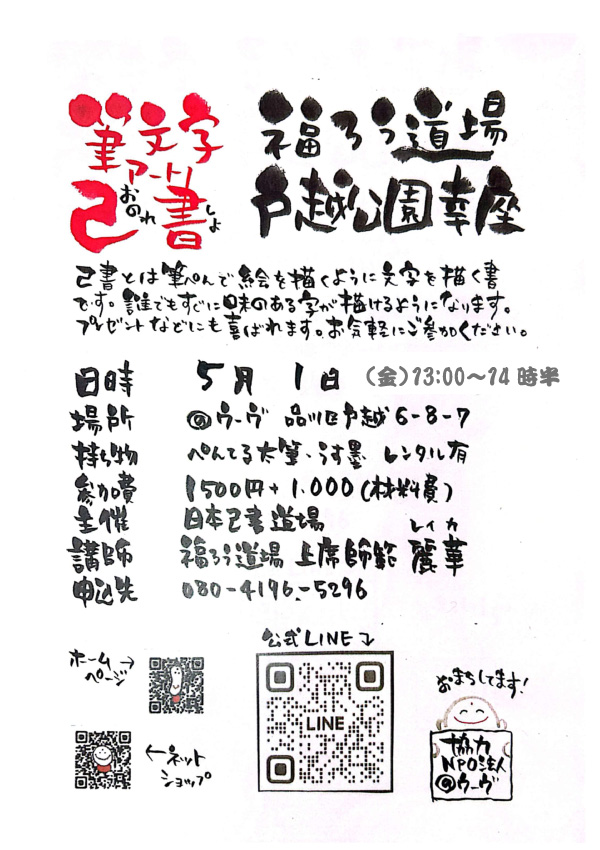 ウーヴ会員の麗華さんが主催する筆文字アート教室、大人気の『己書(おのれしょ)』