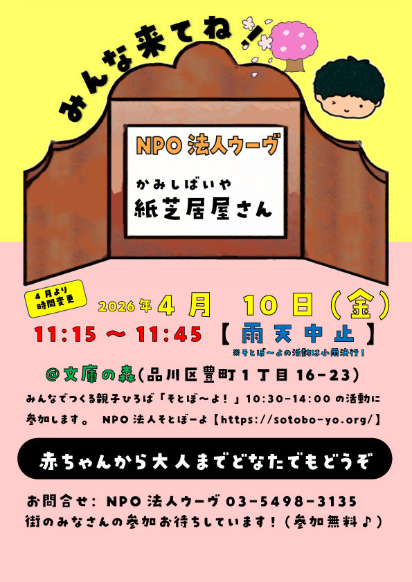 ウーヴの『かみしばい屋さん』毎月第2金曜日文庫の森公園へ出前しています!