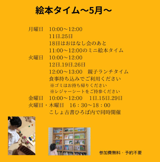 乳幼児親子向けの時間です。参加費無料で予約も不要です。